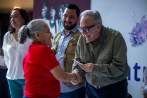 Por su parte, el alcalde Juan de Dios Gámez Mendívil recordó que los apoyos sociales de la Cuarta Transformación han crecido significativamente desde 2018, al pasar de 1,160 pesos a 6,200 pesos bimestrales en la Pensión de Adultos Mayores.