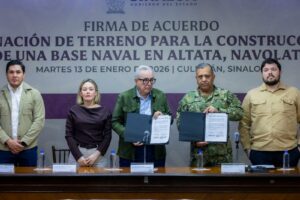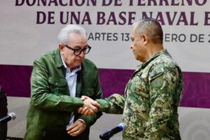 El gobernador Rubén Rocha Moya firmó el acuerdo con el vicealmirante José Daniel Reséndiz Sandoval, comandante de la Cuarta Región Naval, mediante el cual se otorgaron 15 hectáreas adicionales, sumando un total de 25 hectáreas destinadas al complejo naval.