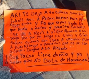 Junto al cuerpo del elemento policiaco fue localizada una cartulina con un mensaje, cuyo contenido no fue revelado por las autoridades, al formar parte de la carpeta de investigación.