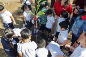Durante la jornada, estudiantes y docentes participaron activamente en la plantación de árboles, reafirmando su compromiso con la naturaleza y la sustentabilidad.